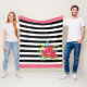 Manta Polar Flores rosadas sin foco floridas rayas blancas neg