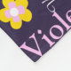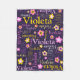 Cute nombre de texto diseñado originalmente manta personalizada con fondo morado oscuro. Esta manta de bonito de texto y flores rosadas, blancas y amarillas también se puede personalizar con tu propio nombre corto, actualmente lee el nombre de Violeta disponible o contáctame para solicitudes de nombres y otras opciones de color. Arte original y diseño de Sarah Trett para www.mylittleeden.com