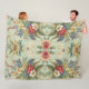 Este artículo es una manta de lana con fondo verde claro con diseño floral.