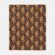 A charming pattern of seated orange foxes surrounded by yellow and purple flowers, green leaves, and dotted accents on a rich burgundy background.