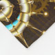 Fondo de madera marrón con mar, cresta mecánica, volante antiguo, ancla dorada y varios engranajes de oro y latón. Estilo Steampunk.