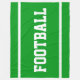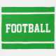 This sporty design features white athletic FOOTBALL text and edge stripes against bright green background. The colors and text in this design can be personalized.