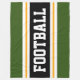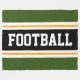 Este diseño deportivo y atlético presenta texto en negrita FOOTBALL dentro de una franja negra amplia resaltada con dos bandas de carreras blancas y amarillas contra rayas exteriores verdes forestales. El texto de este diseño se puede personalizar.