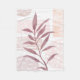 Una acuarela abstracta con formas estampadas y un fondo botánico en una paleta de tonos marrones y suaves.
