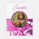 Diseño metálico afligido de fucsia y blanco con foto y nombre Personalizado - simplemente inserte su imagen favorita en esta manta personalizada después de personalizarla con su nombre.