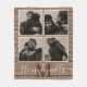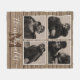 Una manta de moda de campo personalizada con fondo rústico de madera, un collage moderno de 4 fotos con un marco blanco, nombre de familia y monograma.