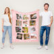 La manta de bebé de primer año de color rosa con 12 fotos cuadradas, perfecta para sus instantáneas. Añade doce fotos de tu hermosa bebé. ¡Personaliza también con su nombre! Celebra el primer año de tu hija con esta manta de collage de fotos de color rosa con vegetación blanca y bayas rosas y su nombre.