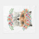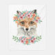 Este retrato de la acuarela de las características del diseño de un zorro que lleva un halo de flores.