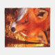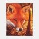 Zorro rojo en bosque del otoño. Árboles y luz del sol caliente.