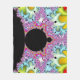 Esta manta ofrece mi fractal "ensalada de fruta" que sea un Mandelbrot con las sombras de colores azules, rosados, púrpuras, amarillos, rojos y verdes.
