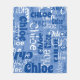 Esta manta personalizada de patrón de nombres personalizado azul y blanco incluye su nombre en varios tipos de letra modernos, modernos y retro. Esta manta es perfecta para su cumpleaños, graduación, regalo de Navidades, ¡o sólo porque los amas! A ellos les encantará suavizar con esta manta personalizada con su propio patrón de nombres repetitivos — ¡al estilo de graffiti!