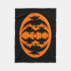 Esta fabulosa frazada presenta un oval naranja con seis cuervos. Cada cuervo tiene ojos amarillos con pupilas negras y alas estiradas. Los cuervos están volando unos hacia otros formando una forma oval. El fondo es negro.