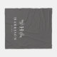 Como pieza coordinadora de la colección de Monogramas Rústicos de Lea Delaveris Design, esta manta presenta un fondo gris pizarra neutro con un monograma rodeado de ramas con un apellido y fecha establecida. almohada coincidente disponible. Perfecto para un regalo recién casado o una ducha de novia.