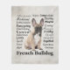 Esta manta de mimbre de Bulldog francés, de un color adorable y adorable, con los rasgos de personalidad de la raza, es un gran regalo para cualquier amante de la Francia.