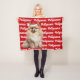 Your dog deserves a blanket of their own, especially with their name and breed on it. Fun throw to warm the season by the fireside or tossed over the sofa. A Pomeranian dog in Santa hat, with the dog's name patterned on a red background. TIP: Choose Personalize to change the background color to one which matches your decor if you like.