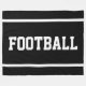 Este diseño deportivo presenta texto de FÚTBOL atlético blanco y rayas en los bordes sobre fondo negro. Los colores y el texto en este diseño se pueden personalizar.