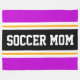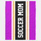 Este diseño deportivo y atlético presenta texto en negrita SOCCER MOM dentro de una banda negra resaltada con doble franjas de carreras blancas y amarillas contra rayas externas de color rosa brillante. El texto de este diseño se puede personalizar.