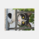 Un lindo gato bicolor, un piebaldo, mira atentamente a través de una cerca de hierro forjado, parece como si usara marcos de gafas. Esta manta de lana suave es una idea de regalo para los amantes del gato. Foto tomada por Katho Menden en una isla griega.