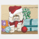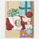 Un gato blanco esponjoso vestido con traje de Santa y no está muy contento con eso.