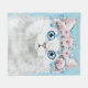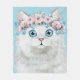 Características del este diseño un gatito blanco bonito que lleva un halo rosado y azul de la flor.