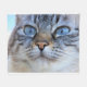 Este diseño presenta una imagen adorable de un gato mirando con determinación a la cámara. Tiene un hermoso abrigo gris de piel.