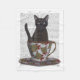 Gato negro en la taza de té de FabFunky. Cuenta con un gato sentado en un hermoso vaso de agua floral. | 191389D