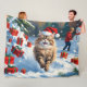 Manta Polar Gato persa sentado en nieve con Gorra Navidad