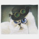 Retrato de gato siamés de pelo largo con un sombrero de punta de vapor con gafas y un monóculo de vidrio.