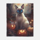 Manta Polar Gato siamés de Halloween con calabazas aterradoras