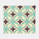 Geometric pattern with alternating dark star shapes surrounded by layered hexagonal outlines in teal, cream, and beige, creating a symmetrical, retro vibe.