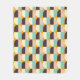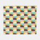 Geometric pattern with overlapping half-circles in teal, cream, brown, and peach on an orange background, creating a vibrant and retro feel.