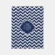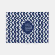 Patrón retro de chevron geométrico azul marino oscuro y zigzag blanco. Marco ornamentado de Guay para su monograma de personalizable. Véalo con una combinación de colores diferente y un tamaño de impresión diferente (la bruja es ajustable por los personalizados)