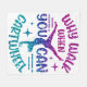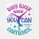 Diseño lúdico y animado que dice: "¿Por qué caminar cuando se puede hacer el volante?" Las letras son coloridas, con tonos oscuros de magenta, violeta y turquesa, e incluyen un llamativo ilustracion energético de una gimnasta infantil que realiza una rueda de cartón. Perfecto para chicas de cualquier edad, especialmente para los niños en gimnasia, baile, animaciones, acrobacias y tumores.