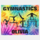 ¡Hermosos movimientos de color! Este diseño dice gimnasia y también se personaliza con el nombre de tu gimnasta. Cuenta con 4 hermosas siluetas de gimnasta cada una haciendo un evento diferente en gimnasia.
