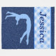 Gimnasia Chica Lámina azul claro con Purpurina de imitación azul oscuro con gimnasta azul polvo haciendo un resorte de espalda. ¡Este diseño personalizado se acaba con su nombre!