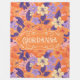Moda floral moderna y animada en un fondo naranja con flores moradas, amarillas, naranjas y rosas.