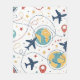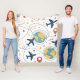 Vibrant seamless pattern blanket featuring airplanes, globes, flight paths, stars, and travel-inspired icons in a playful aviation style. Ideal for travelers, aviation enthusiasts, frequent flyers, and anyone who loves global adventure aesthetics.