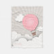 Una manta del paño grueso y suave que ofrece un ilustracion de un globo rosado del aire caliente en las nubes.   Personalice el nombre.