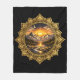 A radiant celestial sunset framed in an ornate golden mandala, where mountains, river, sun, and moon meet in perfect balance. This design blends boho spirituality with bold nature imagery. It’s a statement piece for anyone who loves mountain life, golden hour and night skies. Celebrate peace, strength, and love for the great outdoors with this soft and cozy black fleece throw blanket. | The matching throw pillow is available in my store.