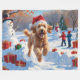Manta Polar Goldendoodle corre en Nieve con Gorra de Navidades
