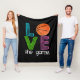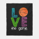Manta fresca del paño grueso y suave del baloncesto con la frase "AMOR el juego."  El "o" es substituido por un baloncesto.