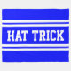 Este diseño deportivo presenta el atlético GORRA TRICK texto en negrita dentro de las anchas rayas horizontales de carreras gemelas blancas contra el fondo azul real.