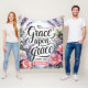 Un arreglo floral acuático en lavanda y rosa, con las palabras "Grace Upon Grace" escritas en tipografía de estilo caligrafía audaz y elegante. personalizado con nombre.