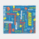 Manta personalizada nombre originalmente diseñada del texto de la diversión. Esta manta tipográfica del texto azul, anaranjado, amarillo, blanco, gris y rojo se puede también modificar para requisitos particulares con su propio nombre corto, lee actualmente a Nathan. Otro disponible conocido o me entra en contacto con para las peticiones conocidas o para la ayuda con caber su nombre encendido a este diseño. Arte y diseño originales de Sarah Trett para www.mylittleeden.com