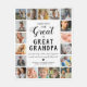 La manta personalizada de fotos del bisabuelo que muestra el lindo dicho "pones al tatarabuelo en el bisabuelo", 18 fotos de los nietos, sus nombres y la dulce leyenda "Los abuelitos traen un poco de sabiduría, felicidad, calidez y amor a cada vida que tocan".