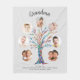 This modern and stylish Grandma gray fleece blanket is decorated with a colorful mosaic family tree.