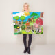 Una manta divertida con animales de granja felices que incluyen un caballo, un cerdo, vacas, ovejas, cabras y pollos. Un granero, un tractor y una alegre escena de granja con un cartel personalizado de granja con el nombre del niño. Un gran regalo para cualquier niño amante de los animales.