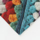 Los cuadrados de granito de crochet multicolor están dispuestos en una cuadrícula cada uno con un patrón único de formas concéntricas
