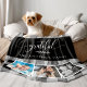Sumérjase en el calor y la gratitud con esta desenfadada funda de Collage de fotos de la familia Black Plaid Fall 6 Square. Con un elegante patrón de verificación de búfalos, la palabra "agradecido" y un área de personalizable para seis fotos familiares, esta manta es perfecta para crear una cómoda y personalizada adición a su decoración. Ideal para las noches de otoño, para las reuniones de Acción de Gracias o como regalo significativo, esta manta mantiene a sus seres queridos cerca y añade un toque de encanto a cualquier espacio.