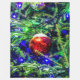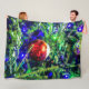 Árbol de Navidad verde, luces decorativas azules y una bola de adorno rojo cubierta de nieve fresca. Humor alegre y alegre. Feliz Navidad y Feliz Año Nuevo. Impresiones y regalos para cualquiera por diversión y buen humor. Manta de forro polar.